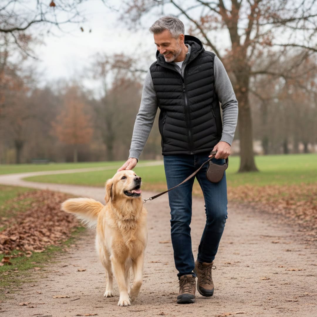 Kot član PLATINUM družine veš, da je vsaka skupna minuta s tvojim kosmatincem dragocena – ne glede na vreme. Prav zato je ta moški lahek hibridni brezrokavnik zasnovan tako, da ti na sprehodih, treningih ali na poti ohranja toploto in svobodo gibanja, da se lahko v miru posvetiš temu, kar je najpomembnejše: vajini povezanosti.